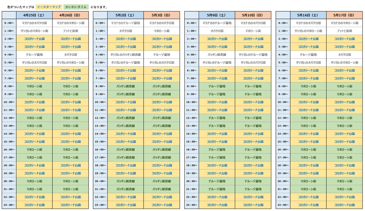 「オバケイドロ!イースター」開催期間中 マップ配信スケジュール